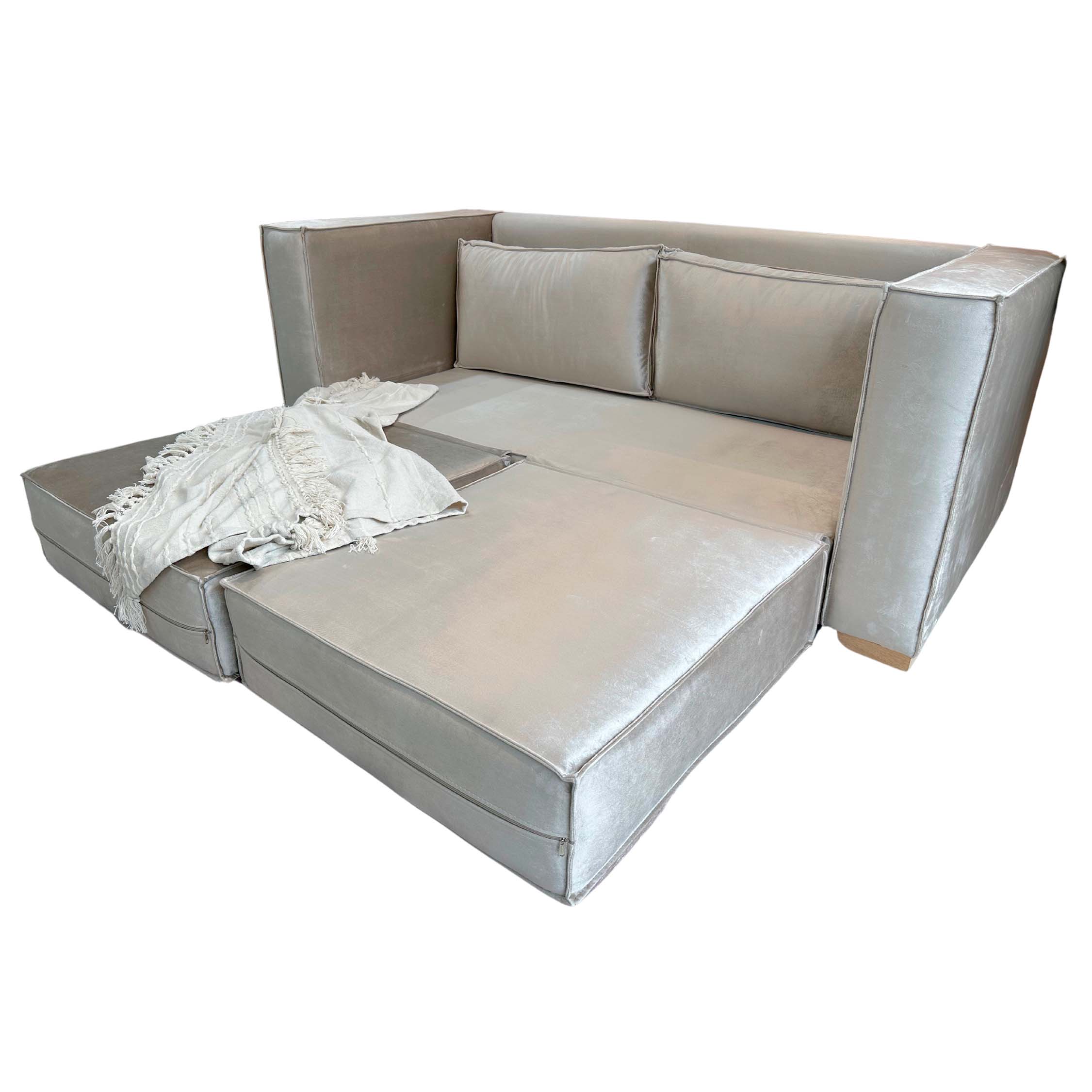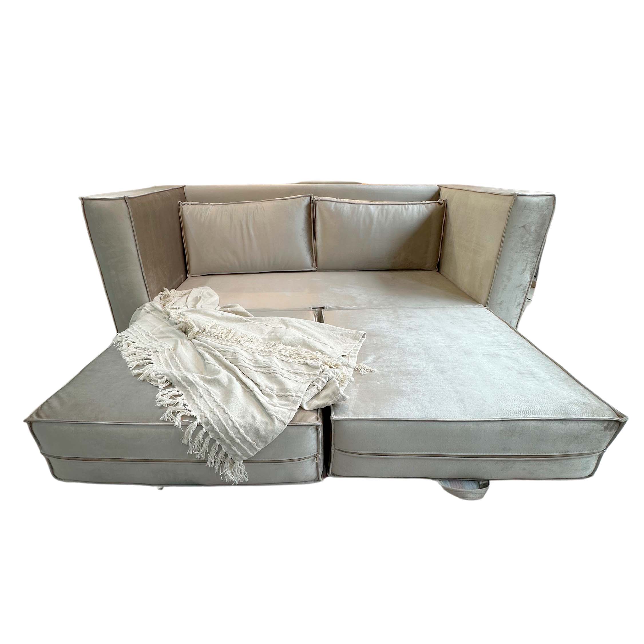 Sofá a cama en segundos, sin necesidad de estructuras metálicas visibles.