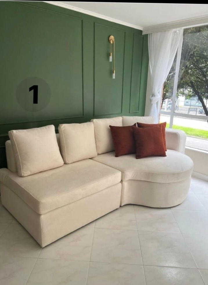 🛋️ Sofá Grecia — Elegancia curvada en cada detalle. Su diseño semicircular y tapizado en lino beige crean un ambiente acogedor y sofisticado, ideal para salas que buscan estilo y comodidad sin perder personalidad.